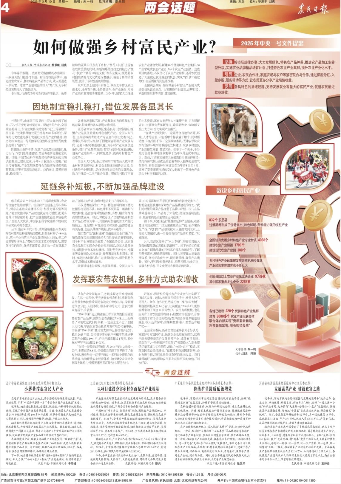 全國兩會期間,如何做強鄉(xiāng)村富民產業(yè)成為代表委員熱議的焦點。大家圍繞產業(yè)規(guī)劃、品牌打造、利益聯(lián)結機制等內容,建言獻策。