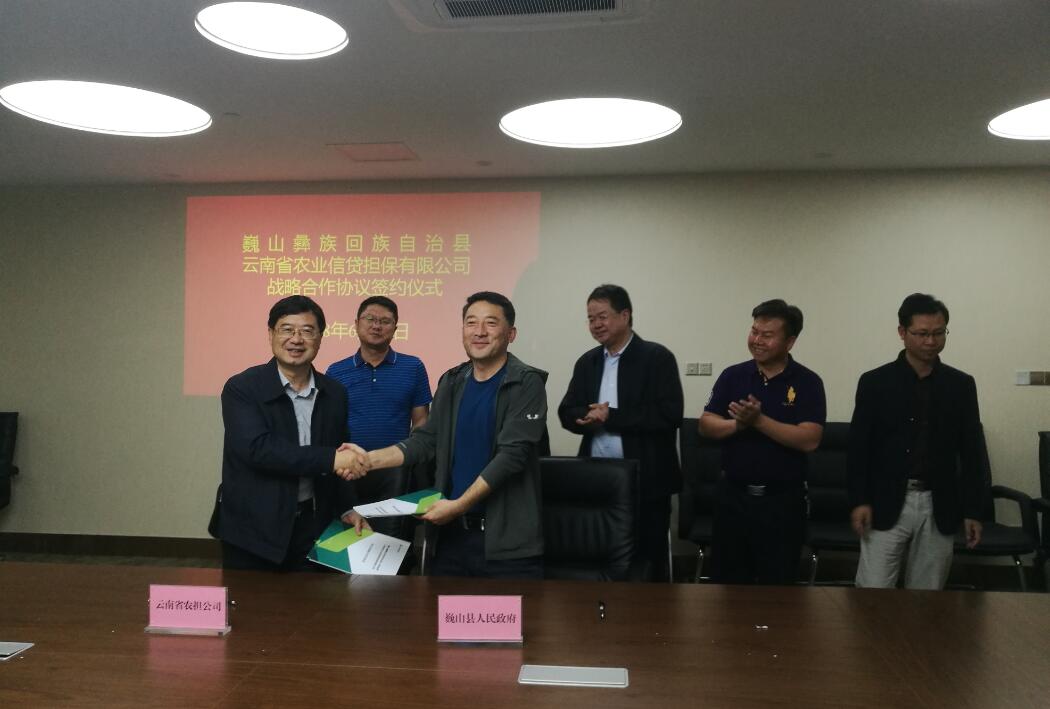 6月14日上午,公司與巍山彝族回族自治縣簽訂了戰(zhàn)略合作協(xié)議。巍山縣縣委副書記、縣長王利偉率縣財政局、農(nóng)業(yè)局及巍山縣農(nóng)村商業(yè)銀行與省農(nóng)擔(dān)公司進(jìn)行座談,省農(nóng)擔(dān)公司郭影董事長、杜開波總經(jīng)理參加會議,雙方就共同推進(jìn)巍山縣農(nóng)擔(dān)工作深入交換意見。