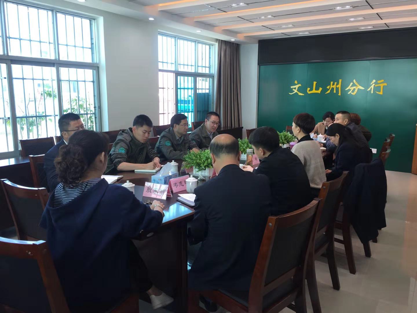 2018年11月27日,省農(nóng)擔(dān)公司董事長郭影、副總經(jīng)理廖寅皓、農(nóng)擔(dān)二部副總經(jīng)理賈萬文以及辦事處負(fù)責(zé)人李少峰帶領(lǐng)文山、硯山辦事處人員前往農(nóng)業(yè)銀行文山州分行參加座談。出席座談的有農(nóng)行州分行梁永行長、布文宇副行長以及各分管部門領(lǐng)導(dǎo)。