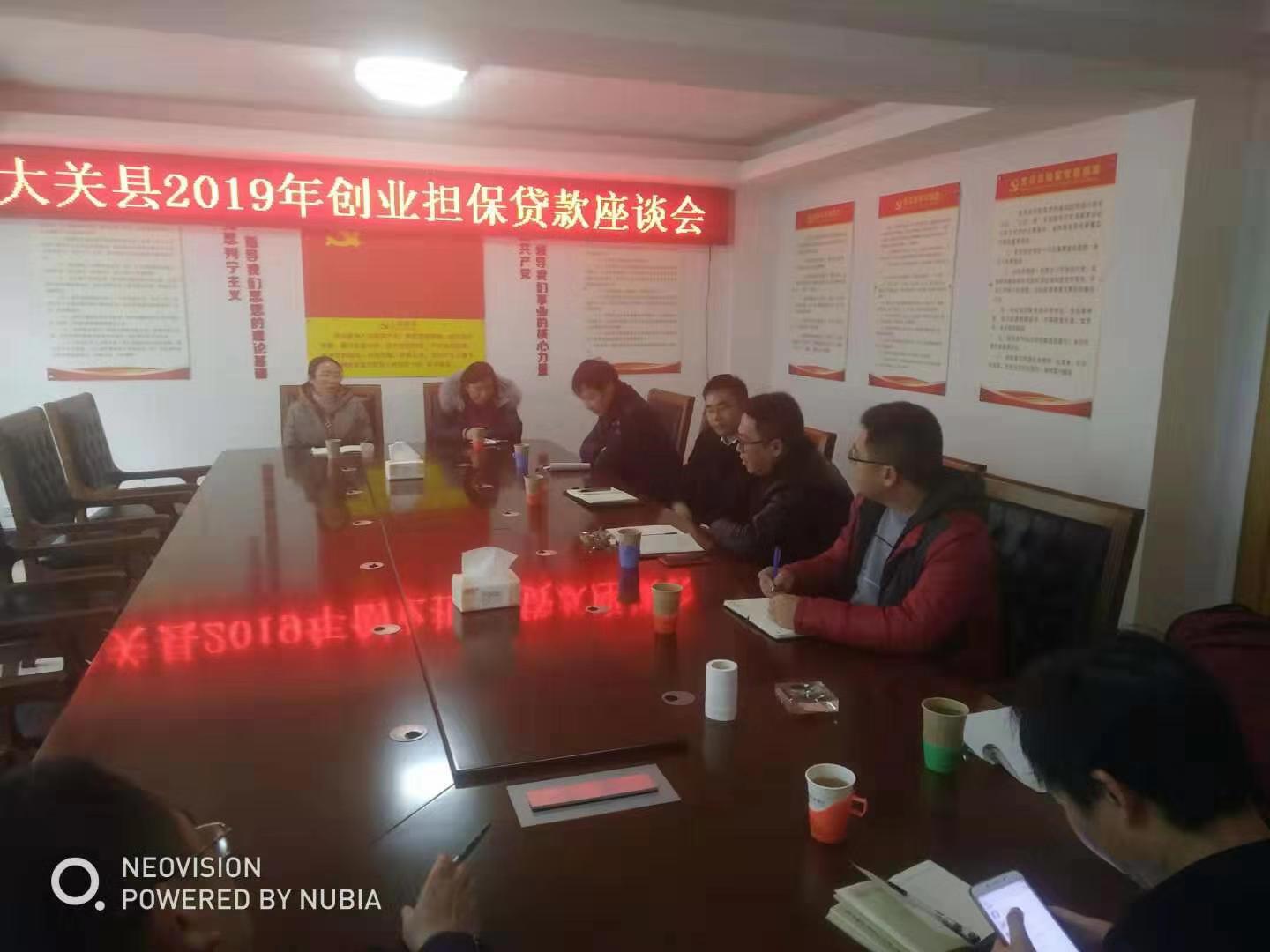 2月19日,昭通辦事處負(fù)責(zé)人朱磊攜辦事處人員到中國(guó)農(nóng)業(yè)銀行大關(guān)縣支行與大關(guān)縣勞動(dòng)就業(yè)局局長(zhǎng)鄧飛、大關(guān)縣財(cái)政局涉外科陳清華、農(nóng)業(yè)銀行大關(guān)縣支行行長(zhǎng)袁龍強(qiáng)圍繞農(nóng)擔(dān)與政府協(xié)議開展座談。