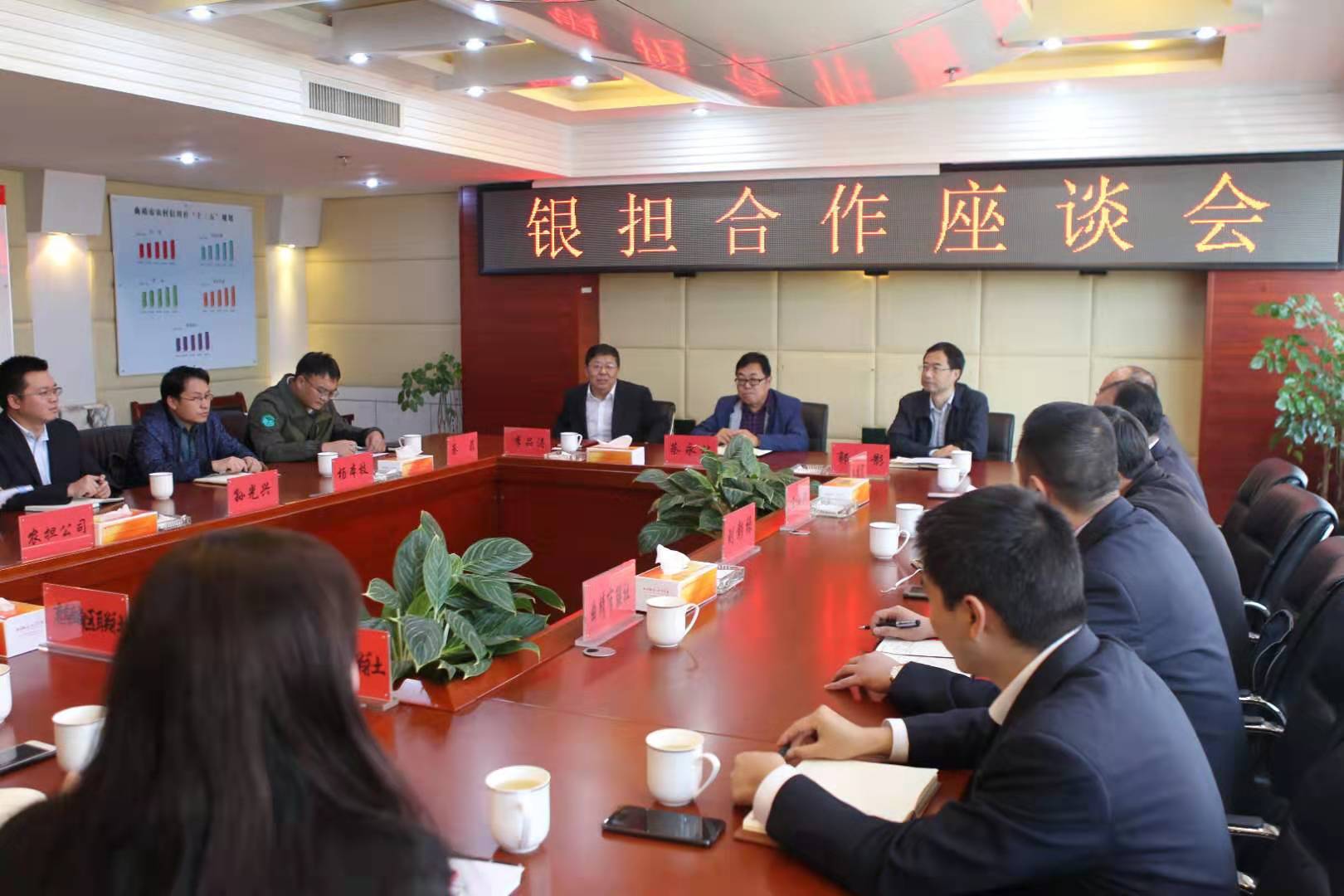 為積極響應(yīng)云南農(nóng)擔(dān)與云南省農(nóng)村信用合作聯(lián)社于2019年11月1日簽訂的《銀擔(dān)戰(zhàn)略合作協(xié)議》精神要求,進(jìn)一步強(qiáng)化統(tǒng)籌安排,擴(kuò)大合作空間,充分發(fā)揮財(cái)政協(xié)同金融支農(nóng)社會(huì)責(zé)任,向曲靖市農(nóng)村市場(chǎng)注入金融活水。11月6日,云南農(nóng)擔(dān)曲靖辦事處與中國人民銀行曲靖市中心支行、曲靖市農(nóng)村信用合作聯(lián)社在曲靖市聯(lián)社共同召開銀擔(dān)合作座談會(huì)。云南農(nóng)擔(dān)董事長(zhǎng)郭影、戰(zhàn)略發(fā)展部負(fù)責(zé)人蔡菲、中國人民銀行曲靖市中心支行行長(zhǎng)蔡永林、曲靖市農(nóng)村信用合作聯(lián)社黨委書記理事長(zhǎng)李品濤、黨委副書記聯(lián)社主任岳德寬出席會(huì)議并發(fā)表講話。中國人民銀行曲靖市中心支行楊本枝、劉彰祿、曲靖市聯(lián)社張興國、麒麟?yún)^(qū)、馬龍區(qū)、沾益區(qū)聯(lián)社負(fù)責(zé)人及曲靖辦事處全體成員參加會(huì)議。