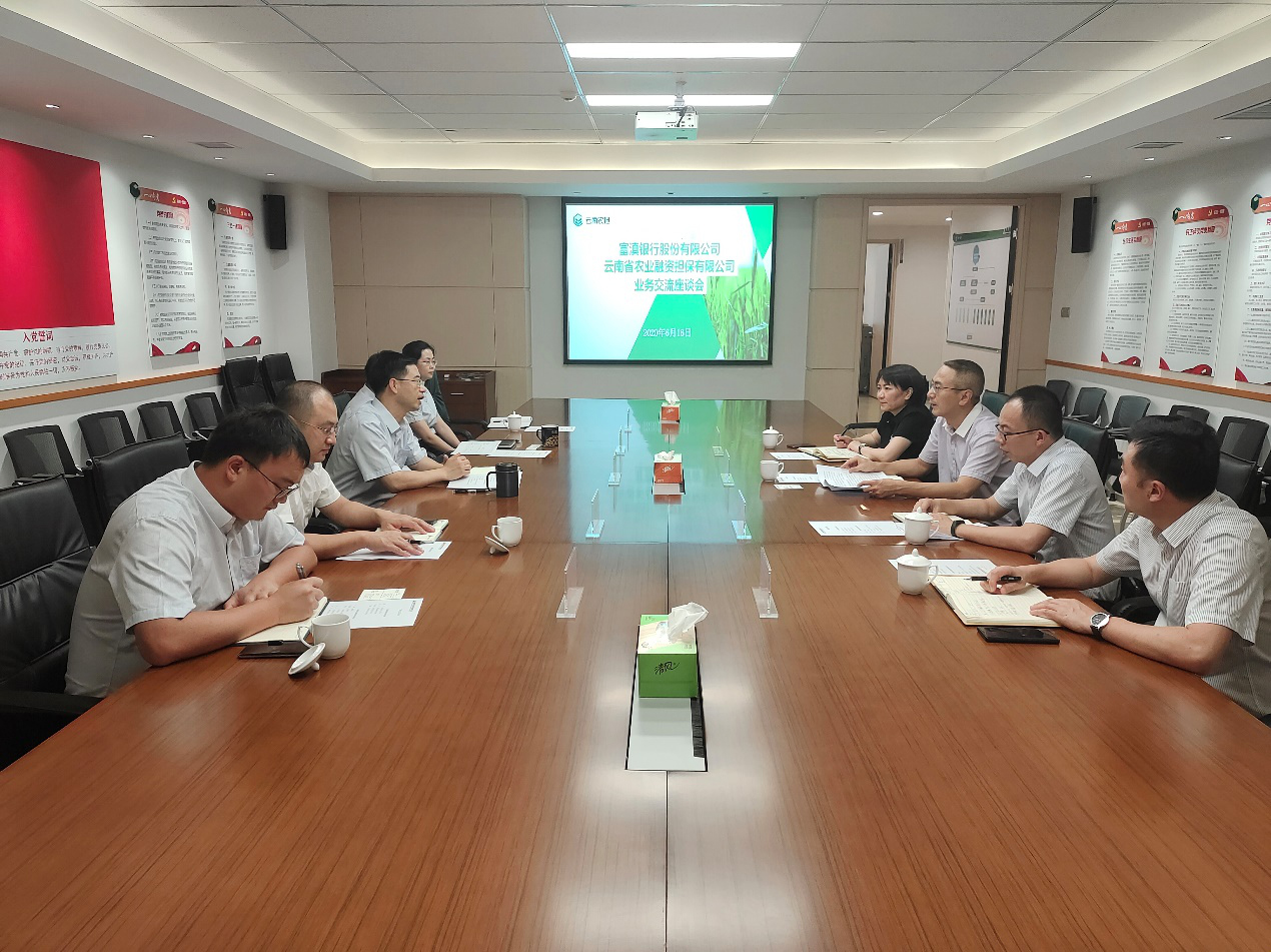 6月16日,云南農(nóng)擔(dān)公司與富滇銀行召開業(yè)務(wù)交流座談會(huì)。富滇銀行納然副行長、普惠金融部、昆明國防支行,農(nóng)擔(dān)公司郭影董事長、杜開波總經(jīng)理、風(fēng)險(xiǎn)控制部、計(jì)劃財(cái)務(wù)部、戰(zhàn)略發(fā)展部參加了會(huì)議。