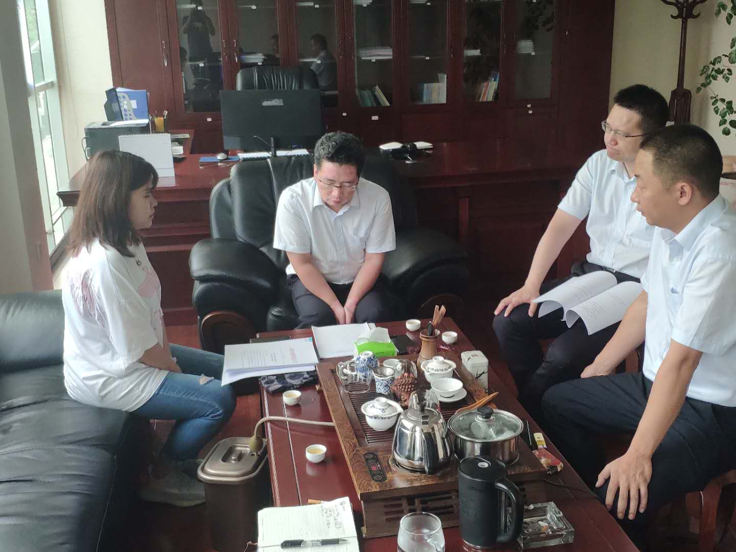 為擴充業(yè)務(wù)類型,做大業(yè)務(wù)規(guī)模,2020年7月3日,臨滄辦事處業(yè)務(wù)主管張麗琴攜項目經(jīng)理楊秋曉前往臨滄臨翔滬農(nóng)商村鎮(zhèn)銀行與董事長陳瑞金、行長楊愛飛、首席風險官嚴曉東、小微團隊主任郭楊云就業(yè)務(wù)合作進行座談。