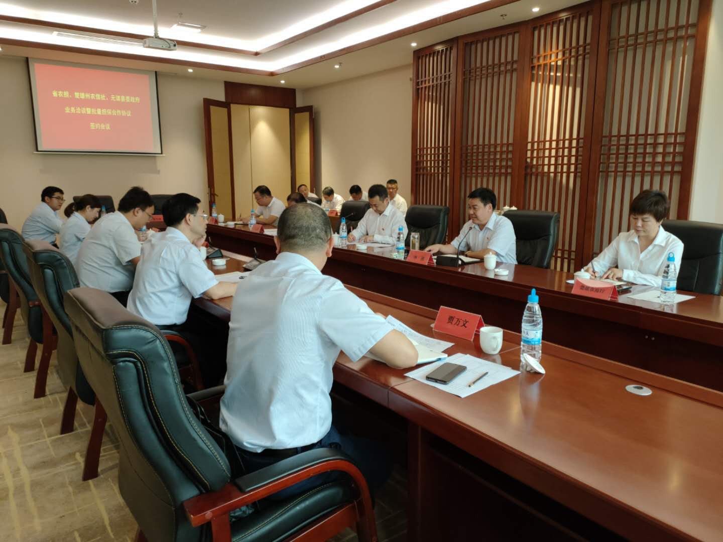 7月2日下午,元謀縣委政府、省農(nóng)擔(dān)公司、省農(nóng)信社楚雄辦事處政銀擔(dān)業(yè)務(wù)座談會(huì)在元謀縣舉行,元謀縣委書記李勇、省農(nóng)擔(dān)公司董事長郭影、省農(nóng)信社楚雄辦事處主任李振華出席會(huì)議。元謀縣財(cái)政等有關(guān)部門,省農(nóng)擔(dān)公司風(fēng)險(xiǎn)控制部、戰(zhàn)略發(fā)展部,楚雄州九縣一市農(nóng)信社、農(nóng)商行主要負(fù)責(zé)人參加會(huì)議。