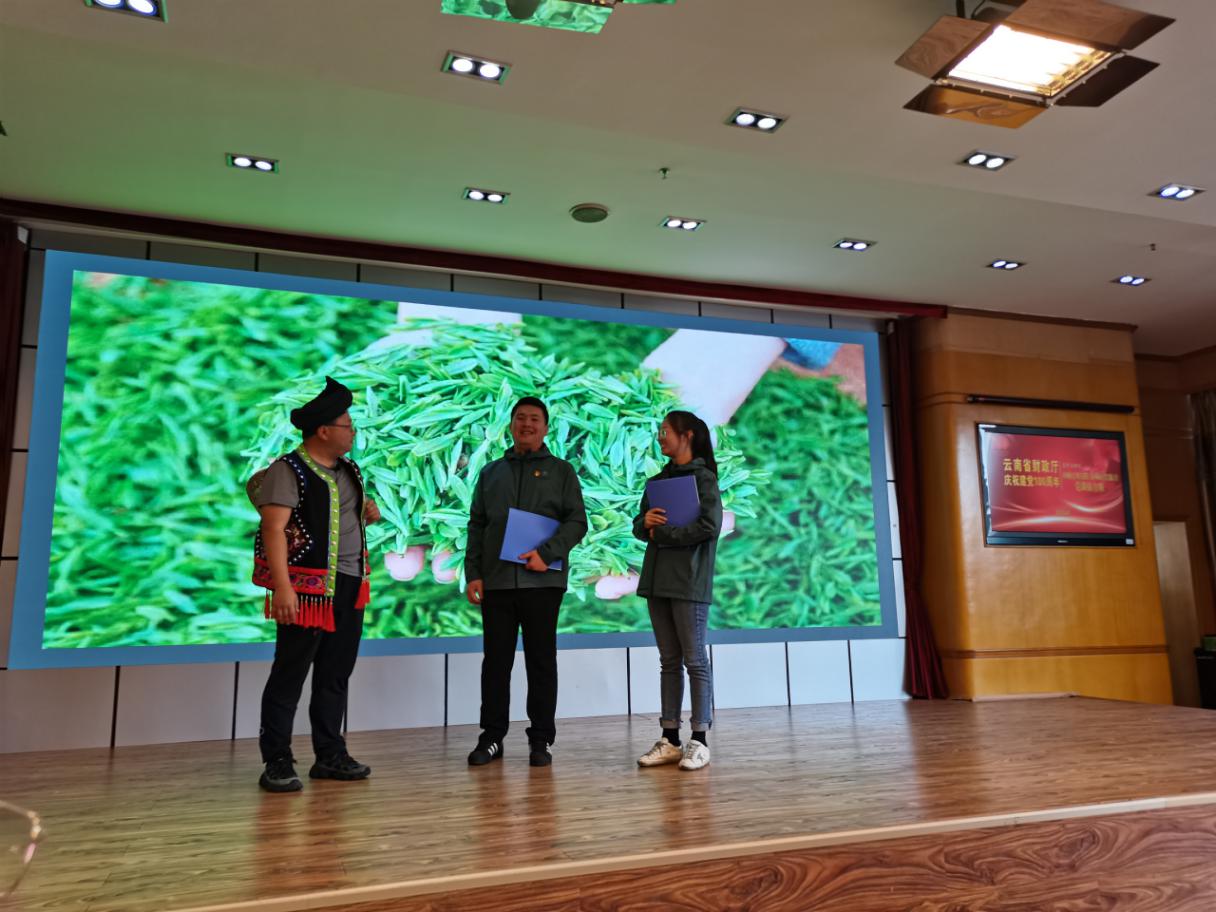 首場(chǎng)黨課接力賽共有4個(gè)黨支部組隊(duì)參加,公司黨總支作為最后一支參賽隊(duì)出場(chǎng)。公司黨總支參賽黨課結(jié)合農(nóng)擔(dān)業(yè)務(wù)實(shí)際,以“助農(nóng)路上感黨恩”為主題,通過情景劇方式,從業(yè)務(wù)工作場(chǎng)景契入,以時(shí)間為軸,由13名黨員職工分別演繹了扎西會(huì)議、云南第一個(gè)黨支部建立、紅軍過迪慶故事、阿佤人民唱新歌、共克貧困奔小康等5個(gè)故事,深情講述了云南黨史上廣為流傳的紅色故事、難忘的光輝時(shí)刻,以及黨的好政策。公司黨總支部副書記、董事長(zhǎng)杜開波主持了講黨課活動(dòng)。
