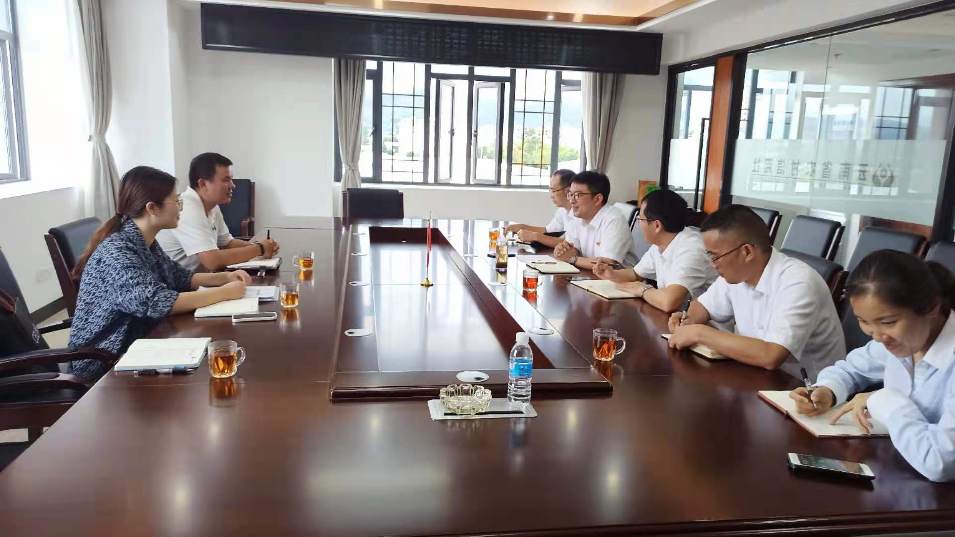 2021年9月8日,業(yè)務(wù)發(fā)展部副經(jīng)理寸明杰帶領(lǐng)保山辦事處副主任胡幫露、項目經(jīng)理竇云云到施甸農(nóng)商行開展業(yè)務(wù)座談,施甸農(nóng)商行董事長席建飛、行長楊慶龍、業(yè)務(wù)發(fā)展部經(jīng)理李頌堂、信貸部經(jīng)理岳忠艷、風險部經(jīng)理楊開華參加會議。