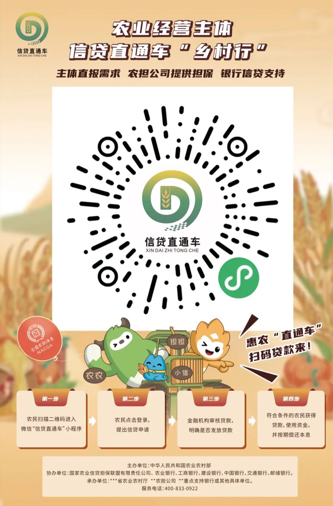 啟動會上,農(nóng)業(yè)農(nóng)村部計劃財務(wù)司副司長王衍再次強調(diào)了開展農(nóng)業(yè)經(jīng)營主體信貸直通車“鄉(xiāng)村行”活動的重大意義,對下一步如何開展好此項活動也提出了明確的要求;國擔(dān)聯(lián)盟公司、工行、農(nóng)行、中行、建行、交行以及郵儲銀行各總行相關(guān)負(fù)責(zé)人也針對推動“鄉(xiāng)村行”活動交流了意見;以北京、浙江、貴州等省份為主的農(nóng)業(yè)農(nóng)村主管部門和省級農(nóng)擔(dān)公司也連線介紹了前期準(zhǔn)備工作情況,交流了活動推進(jìn)初期取得的成效。