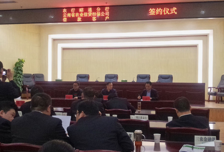 會(huì)議由農(nóng)業(yè)銀行分行三農(nóng)部負(fù)責(zé)人李國(guó)云主持,農(nóng)擔(dān)公司昭通辦事處朱磊代表公司分別與鹽津縣、綏江縣、永善縣支行行長(zhǎng)及其借款客戶進(jìn)行簽約。