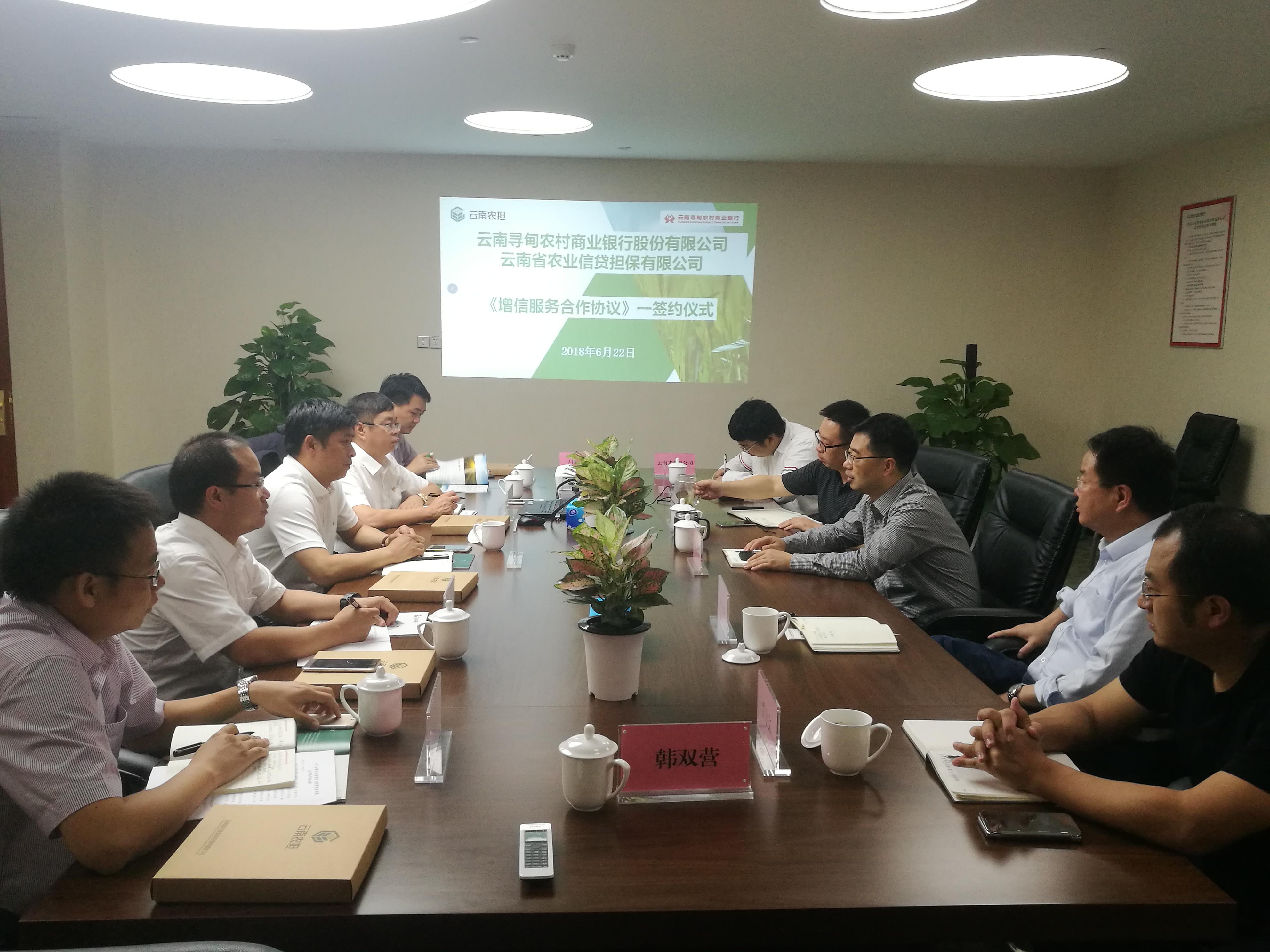2018年6月22日,云南省農(nóng)業(yè)信貸擔保有限公司與云南尋甸農(nóng)村商業(yè)銀行股份有限公司在昆明召開銀擔合作座談會,并簽署《尋甸縣新型農(nóng)業(yè)經(jīng)營主體增信服務合作協(xié)議》。省農(nóng)業(yè)信貸擔保有限公司董事長郭影、總經(jīng)理杜開波、副總經(jīng)理廖寅皓,尋甸農(nóng)商行董事長虞燕林、行長李葉忠、副行長范彪等領導參加座談。