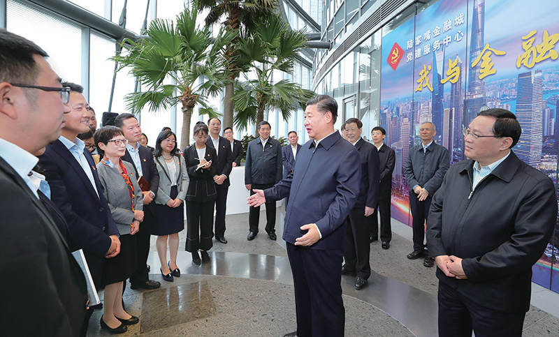 2018年11月6日至7日,中共中央總書記、國(guó)家主席、中央軍委主席習(xí)近平在上??疾?。這是6日上午,習(xí)近平在上海中心大廈22層的陸家嘴金融城黨建服務(wù)中心,同正在聯(lián)合開展主題黨日活動(dòng)的企業(yè)黨員親切交談。
