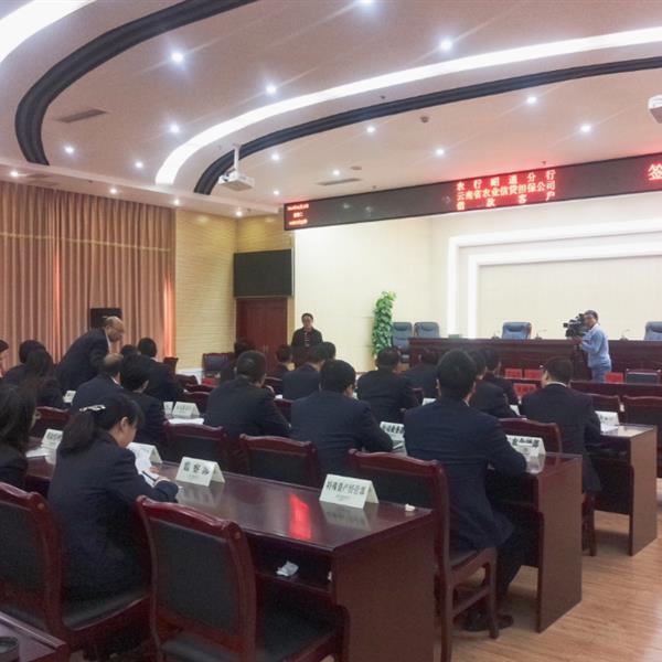 辦事處與昭通農(nóng)業(yè)銀行分行領(lǐng)導(dǎo)、各縣行長(zhǎng)、信貸經(jīng)理及分行各部門(mén)在農(nóng)業(yè)銀行分行共同就前期審核通過(guò)借款客戶批量舉辦簽約儀式