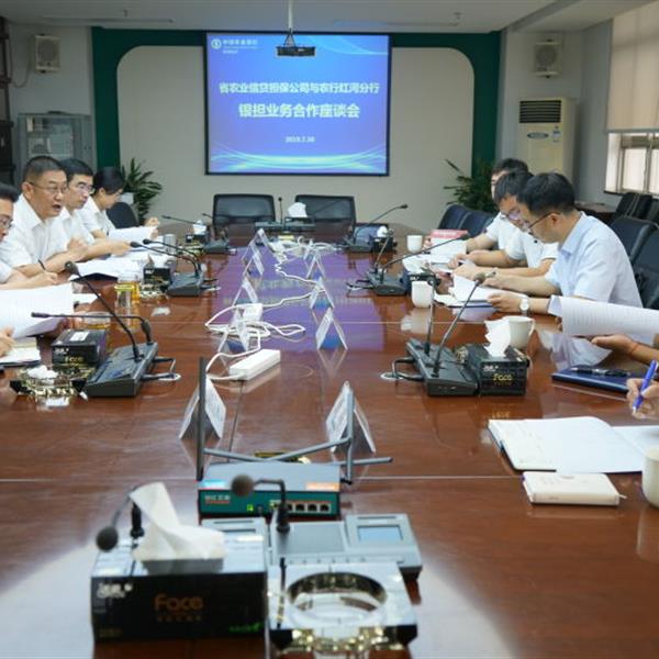 7月30日,云南農(nóng)擔(dān)董事長郭影攜戰(zhàn)略發(fā)展部負(fù)責(zé)人蔡菲、農(nóng)擔(dān)一部負(fù)責(zé)人劉川、紅河辦事處和彌勒辦事處到中國農(nóng)業(yè)銀行紅河州分行開展業(yè)務(wù)座談。